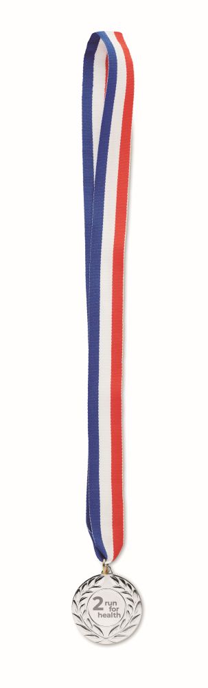 Medal made of iron with polyester strap in blue, white and red colours. 5 cm diameter