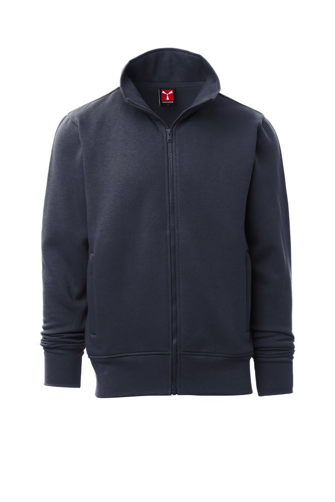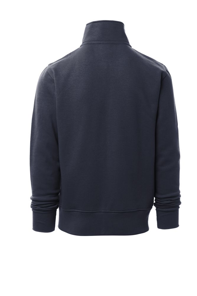 Men’s sweatshirt, with matching full zip in plastic with single customised pull, fitted sleeves, two welt pockets with zip, stretch rib cuffs and hem, reinforced seams, matching inner neck tape reinforcement. 70 % cotton a 30 % polyester, 280 gsm.