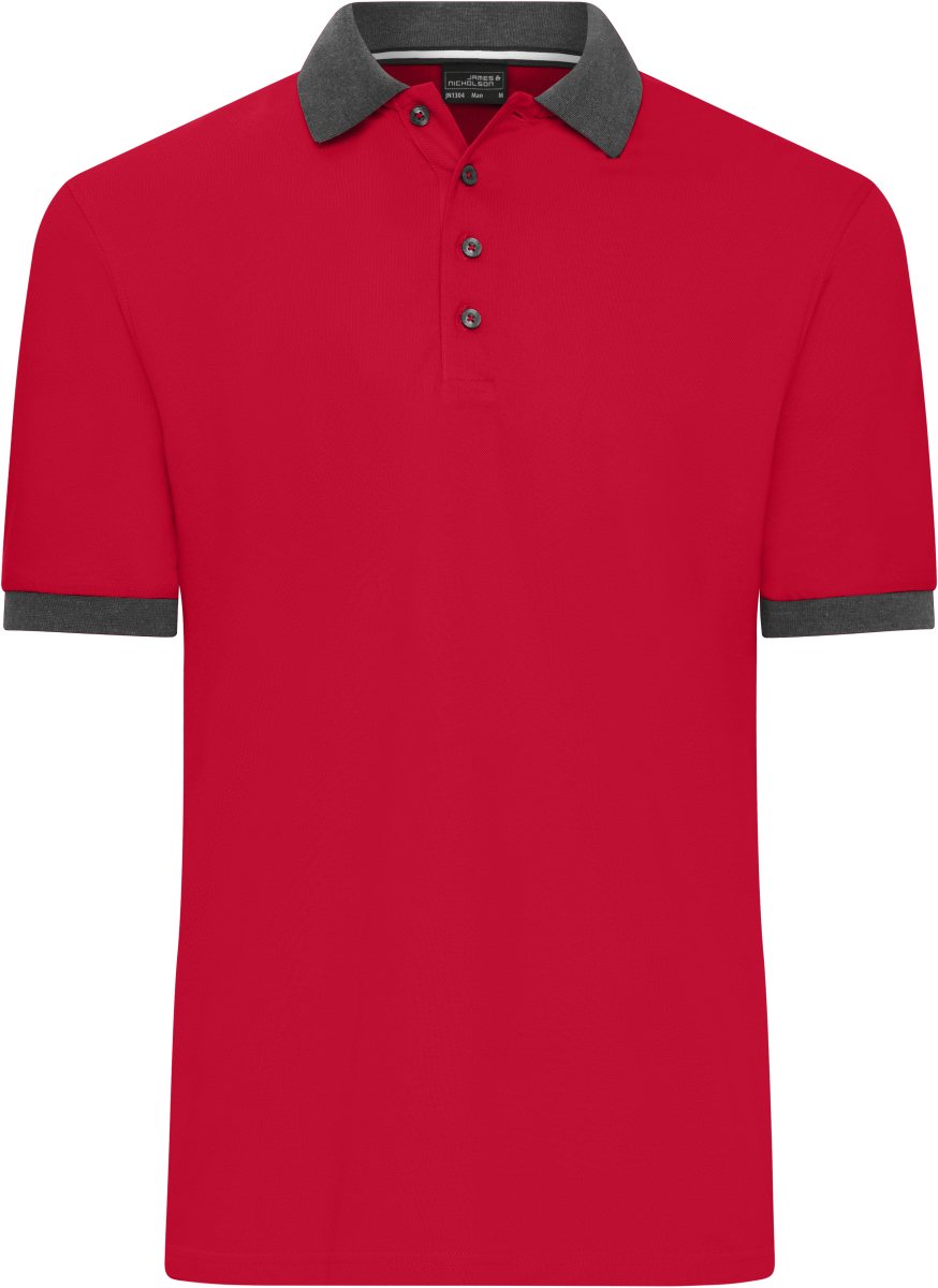 6 button-placket, necktape in contrasting color, knitted polo collar and cuffs in black color, side slits. Material: 195g/m2, 100% combed ringspun cotton.