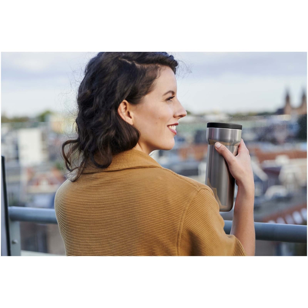 The 375 ml Ellipse insulated mug is made of durable stainless steel and is perfect for life on the go. It keeps drinks hot for up to 4 hours or cold for up to 8 hours, making it ideal for both your morning coffee and refreshing cold drinks. The mug is 100% leak-proof, fits in almost any cup holder, and is BPA-free for safe everyday use. Handwash is recommended to maintain its finish. Dimensions: 17,8 x O 8,4 cm