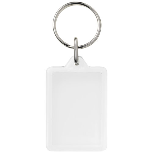 Clear rectangular Y1 keychain with metal split keyring. The metal looped ring offers a flat profile which is ideal for mailings. Print insert dimensions: 3,5 cm x 2,4 cm.