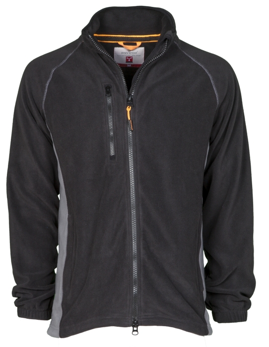 Men’s two-tone fleece, with black plastic 8 mm zip, raglan sleeves, adjustable drawstring at the waist, elasticated cuffs, two pockets with concealed zip, one front zip pocket, neck with contrasting reinforcement tape, reinforced seams.