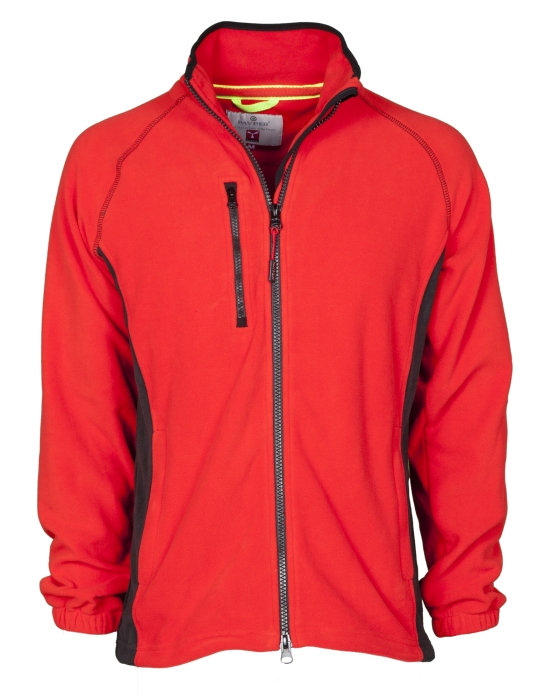 Men’s two-tone fleece, with black plastic 8 mm zip, raglan sleeves, adjustable drawstring at the waist, elasticated cuffs, two pockets with concealed zip, one front zip pocket, neck with contrasting reinforcement tape, reinforced seams.