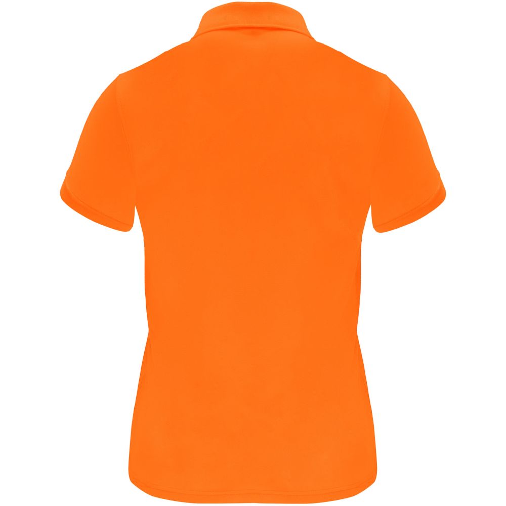 Short-sleeve technical polo shirt for women. Knit collar with three-button placket. Fitted cut. Breathable, easy wash and dry fabric. Removable label. Technical fabric. Breathable fabric. The model is 173 cm and is wearing size S.