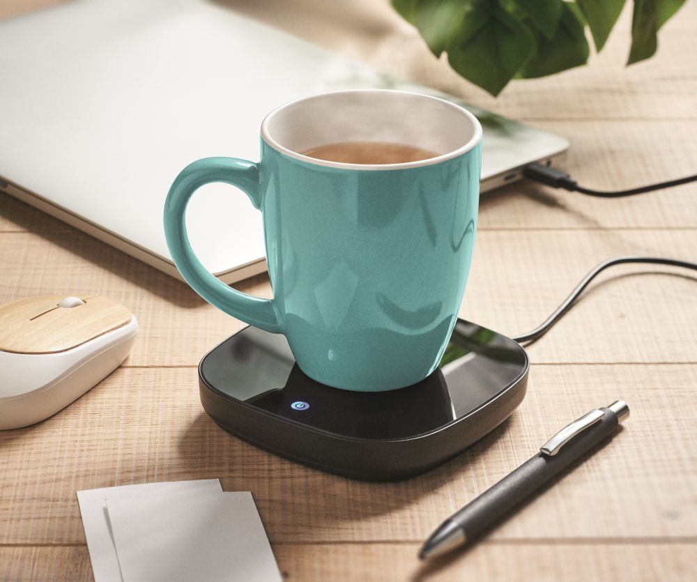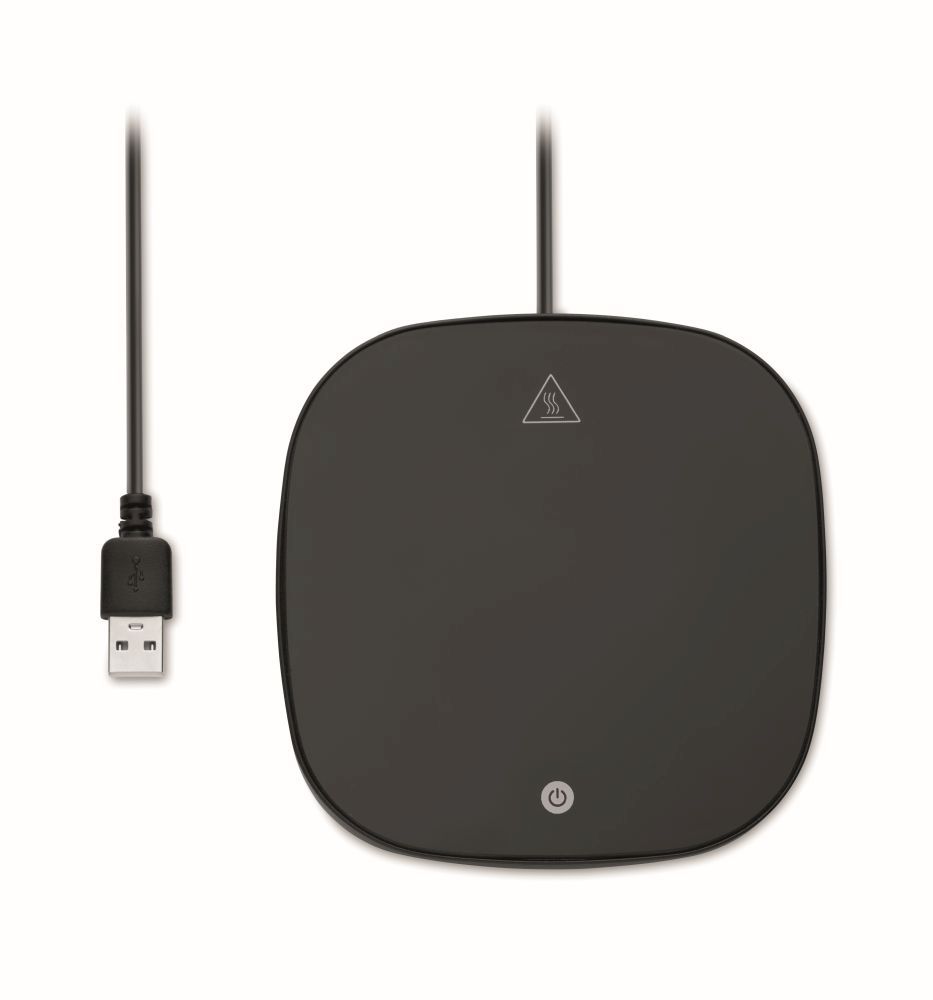 Mug warmer device in ABS. Keep drinks warm to a max of 45oC. It has a USB connection cable.
