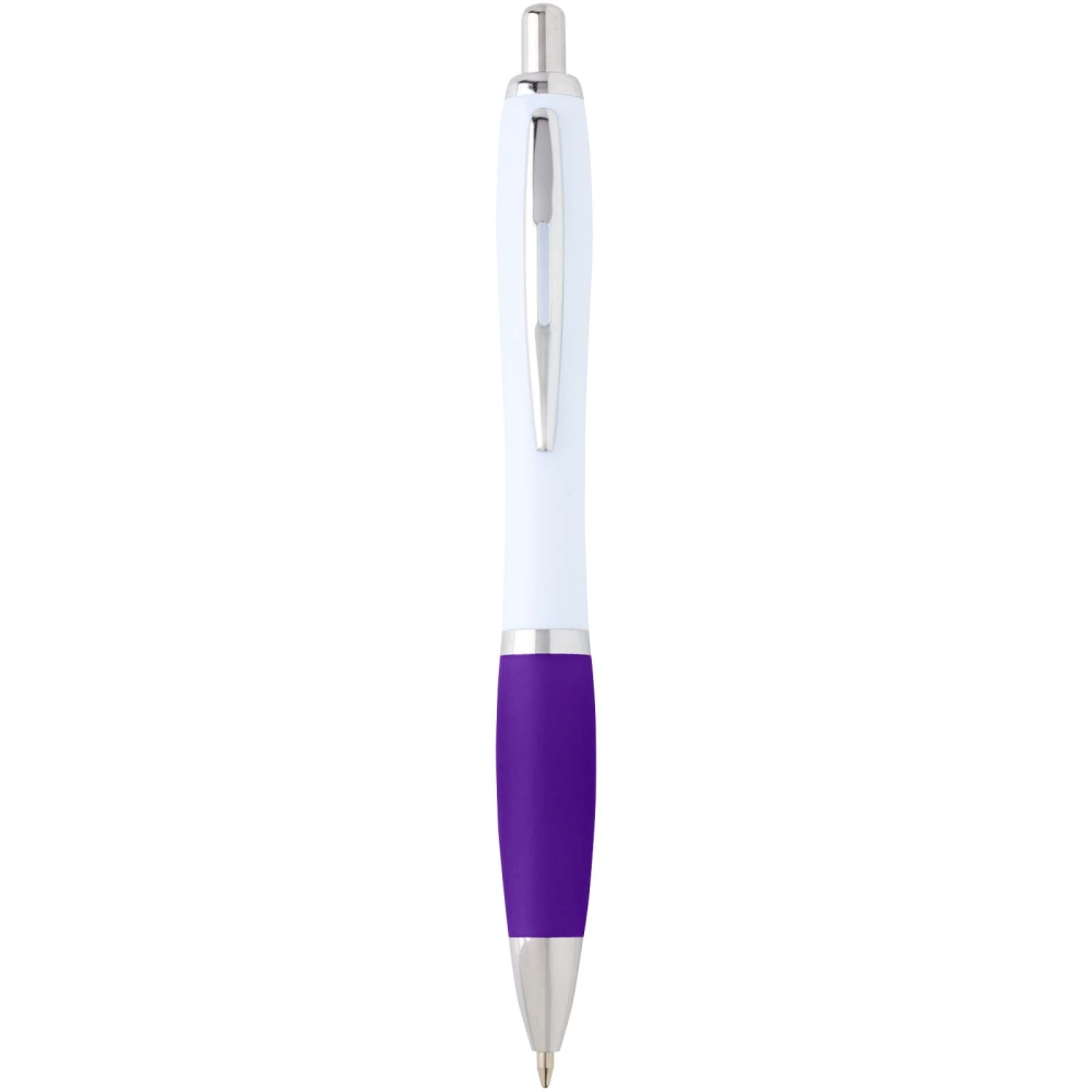 The Nash ballpoint with a stylish curvy design and a soft grip is made of recycled plastic that is hard and solid and thus offers a long life span. Ink colour: Blue. Writing length: 1000 metres. Nib size: 1.00 mm. Dimensions: 13,9 x O 1,3 cm