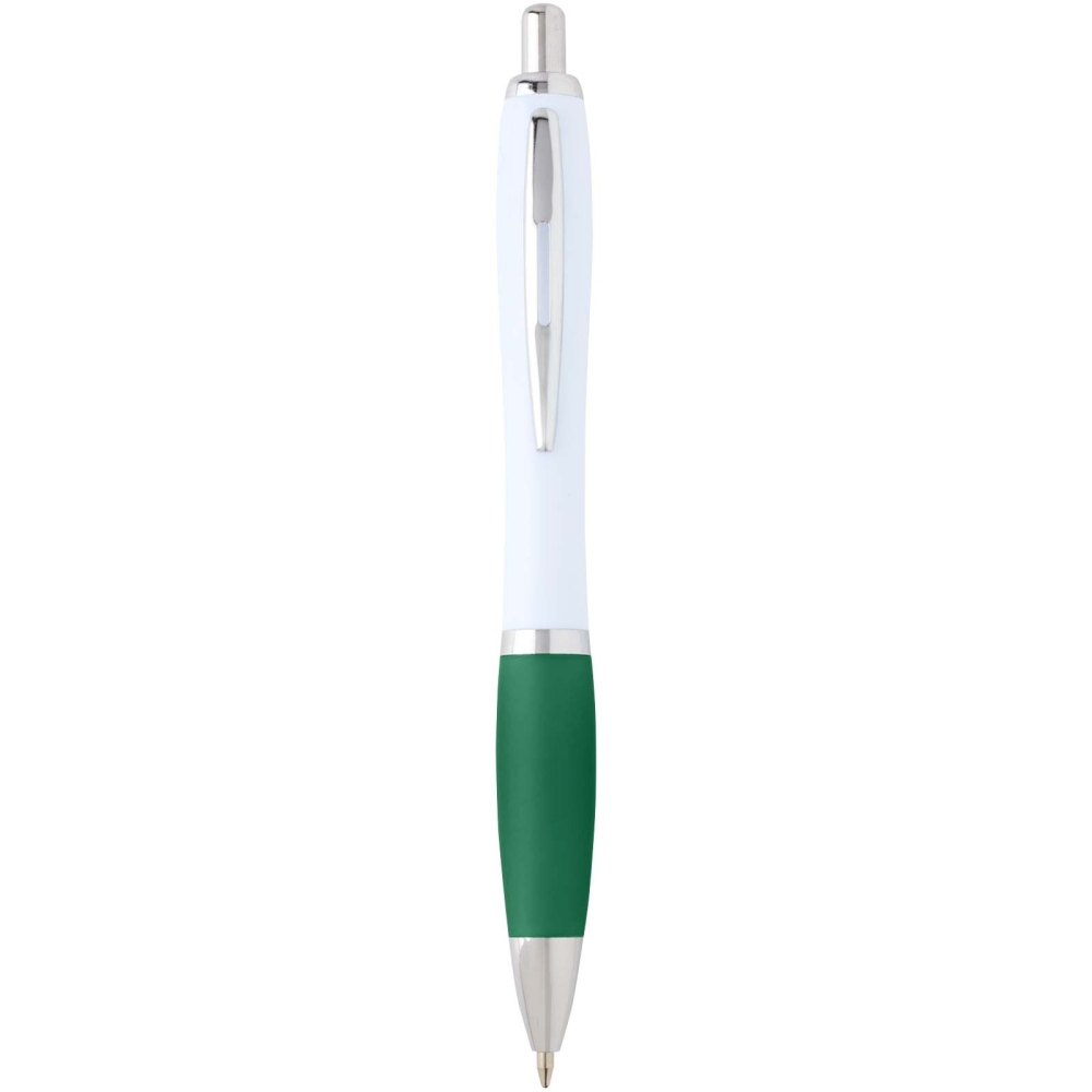 The Nash ballpoint with a stylish curvy design and a soft grip is made of recycled plastic that is hard and solid and thus offers a long life span. Ink colour: Black. Writing length: 1000 metres. Nib size: 1.00 mm. Dimensions: 13,9 x O 1,3 cm