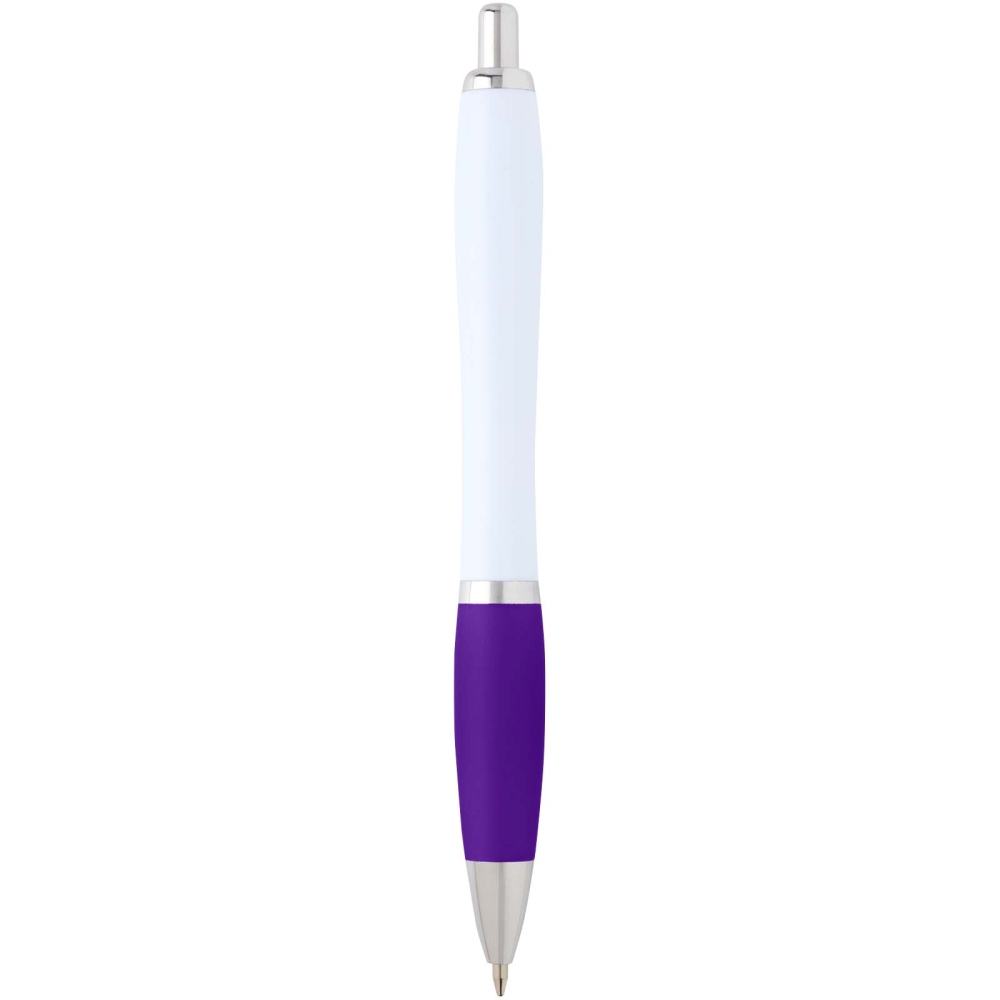 The Nash ballpoint with a stylish curvy design and a soft grip is made of recycled plastic that is hard and solid and thus offers a long life span. Ink colour: Black. Writing length: 1000 metres. Nib size: 1.00 mm. Dimensions: 13,9 x O 1,3 cm
