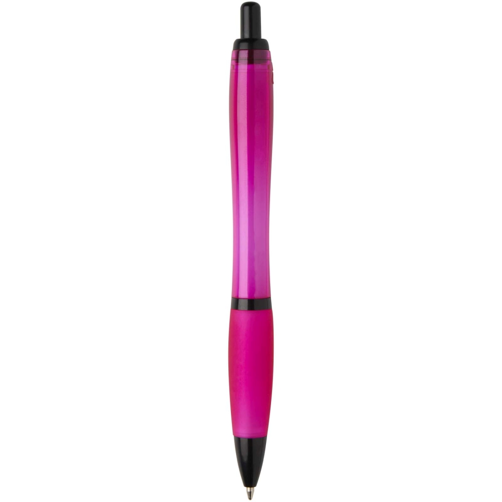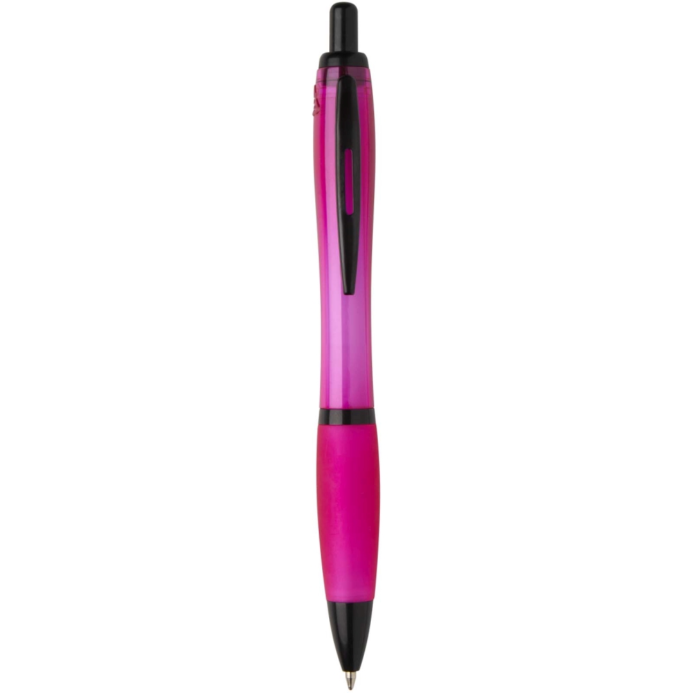 Nash recycled plastic ballpoint pen with black trims, magenta