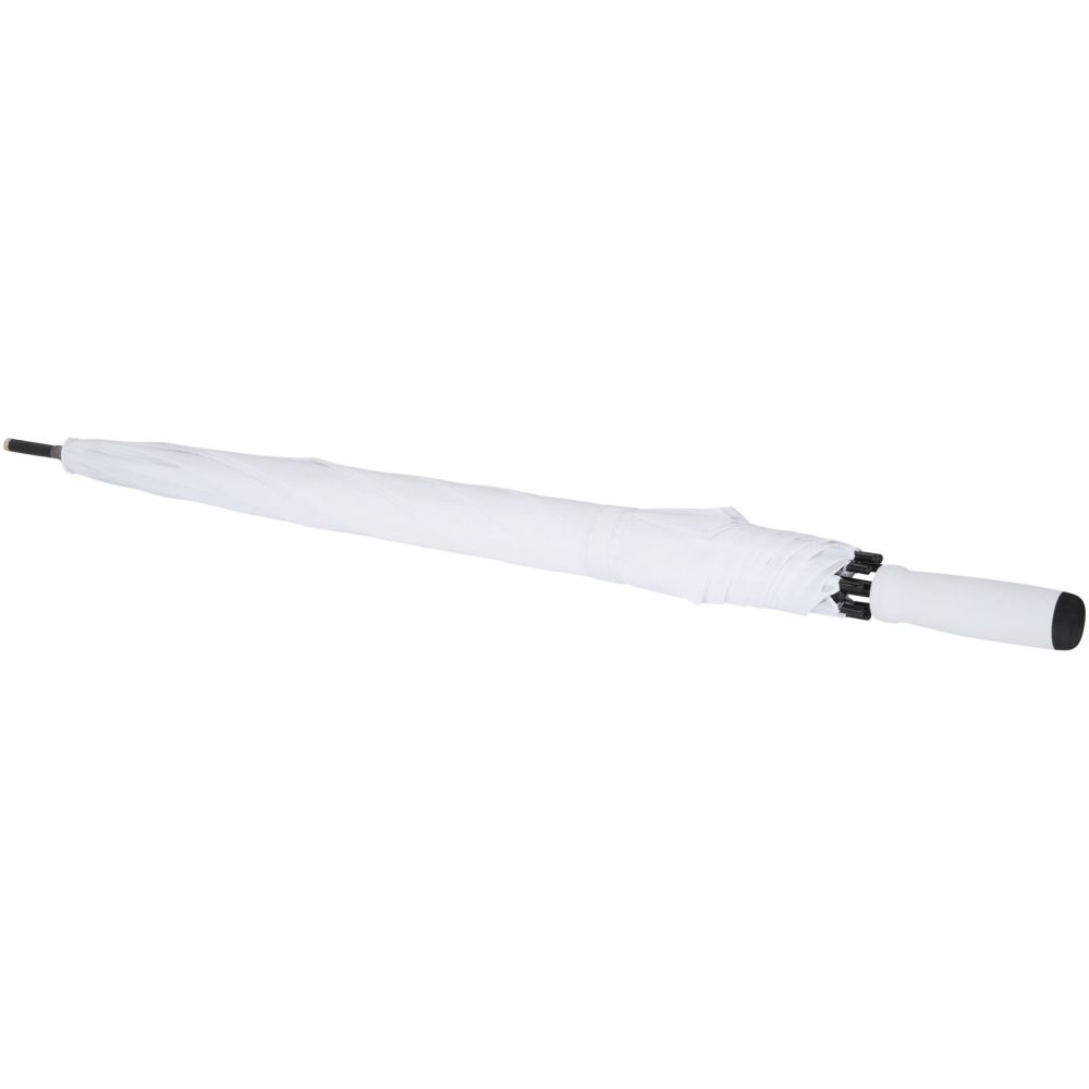 23” automatic opening umbrella with a recycled PET pongee polyester canopy. It has a sturdy metal shaft, fiber glass frame, and a comfortable EVA handle with colour matching end. Large print area on each of the panels.