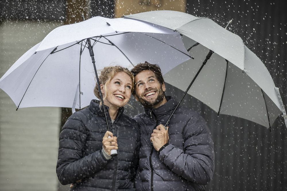 23” automatic opening umbrella with a recycled PET pongee polyester canopy. It has a sturdy metal shaft, fiber glass frame, and a comfortable EVA handle with colour matching end. Large print area on each of the panels.