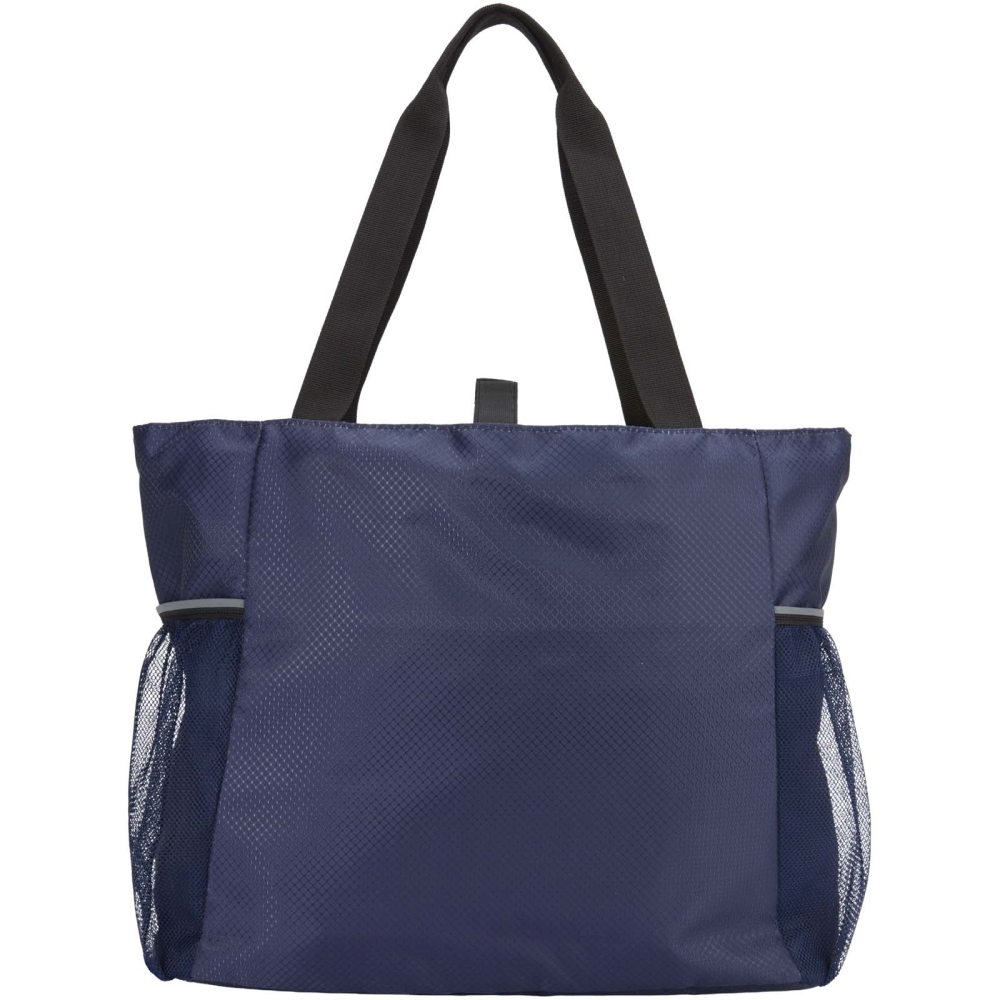 The Nomad yoga tote bag is made from GRS certified recycled ripstop fabric with a water-repellent finish, GRS certified RPET lining, and reflective elements. It is designed to help you stay organised during studio sessions, beach visits, or everyday errands. The bag features a spacious zipped main compartment and multiple organisational pockets inside and outside. Elastic webbing straps with hook and loop closure on top allow you to carry a yoga mat or beach mat securely. The tote bag has space for your mat, towel, water bottle, a change of clothes, and personal items, making it suitable for both exercise and daily activities. Dimensions: 40 x 34 x 14 cm