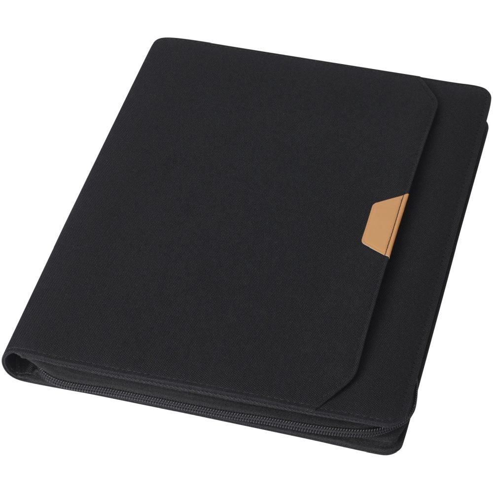 The RCS certified Nomumi portfolio is partly made from recycled post-consumer polyester, making this portfolio a more sustainable choice since it helps to reduce the use of virgin raw material. Featuring a zipper closure, pen loop, accordion pocket, and 20 white lined sheets with 70 g/m2 recycled paper from sustainable sources. The pen and other accessories appearing on the photos are not included with this item.