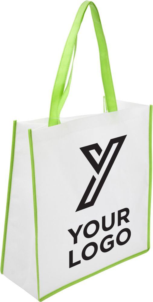 Carrying/shopping bag in a 80g/m2 nonwoven material with long handles and coloured trim. Product size: 38 x 40 x 16 cm