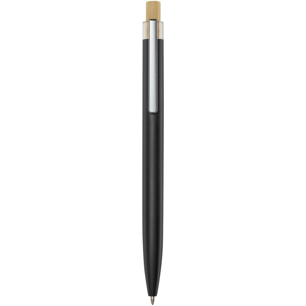 The Nooshin ballpoint pen is made from recycled aluminium, which requires less energy than producing aluminium from raw materials. It also reduces the amount of waste in landfills and helps to conserve natural resources aiming to reduce greenhouse emissions. The push button is made of bamboo. Ink colour: Blue. Writing length: 800 metres. Nib size: 1.00 mm.