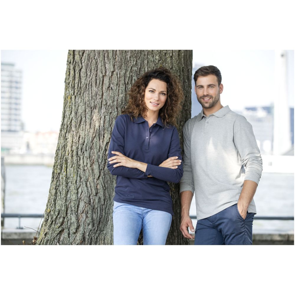 Flat knit collar. Pick-Stitch details. Three button placket. Satin neck tape. Side slits with satin tape finishing. Forward shoulder seam with chain stitching. Dyed-to-match engraved buttons. Heat transfer main label for tagless comfort.