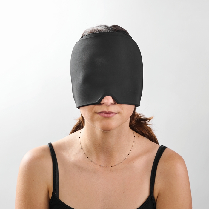 Hot and cold compress relief cap in stretchable and adjustable Lycra (for headache, pain and tension). One size fits all.Dimensions: 22 x 17 x 1,5cm
