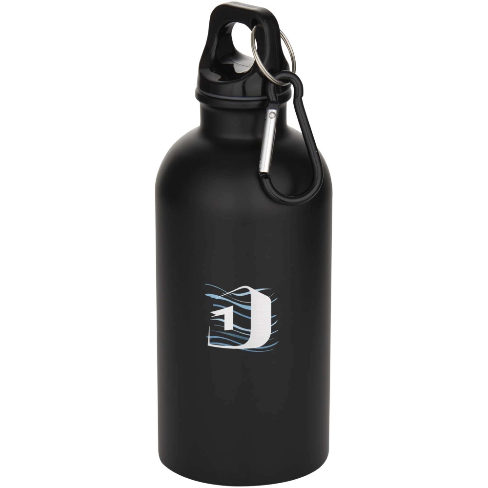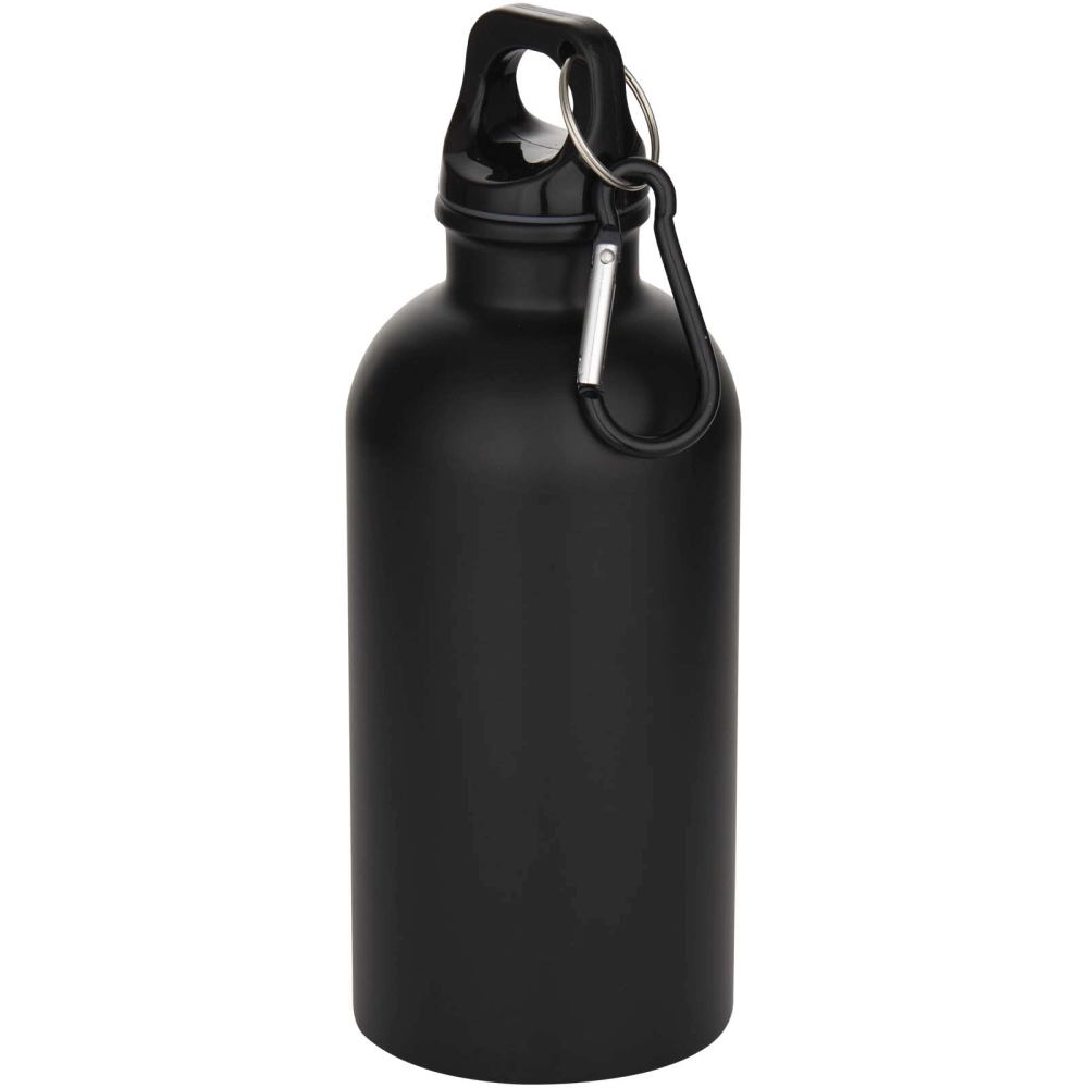 Oregon 400 ml matte RCS recycled single wall stainless steel water bottle with carabiner, solid black