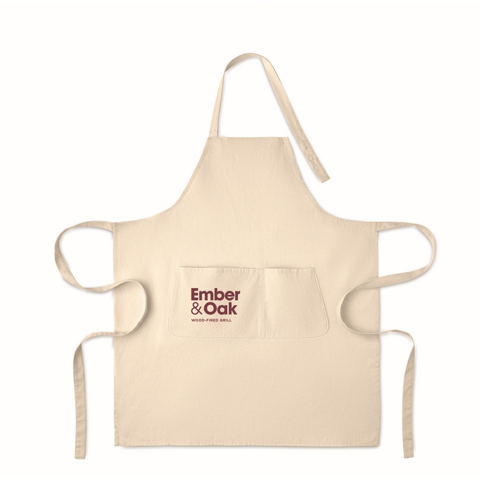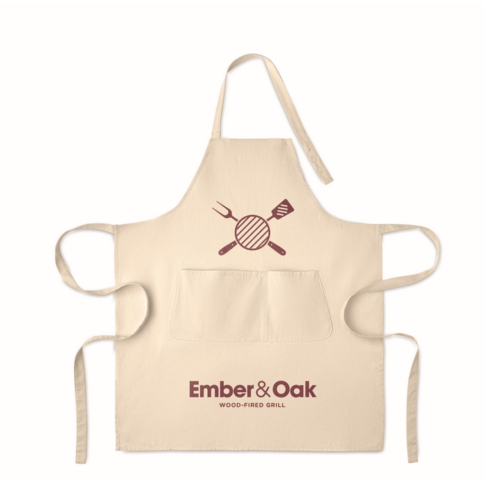 Adjustable bib apron with 1 large front pocket with 2 compartments in 240 gr/m2 organic cotton. With adjustable button on the neck strap. This product is OEKO-TEX® STANDARD 100 certified.Dimensions: 75 x 90cm