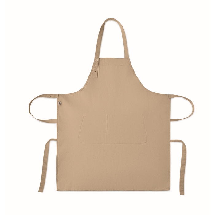Adjustable bib apron with 1 large front pocket with 2 compartments in 240 gr/m2 organic cotton. With adjustable button on the neck strap. This product is OEKO-TEX® STANDARD 100 certified.Dimensions: 75 x 90cm