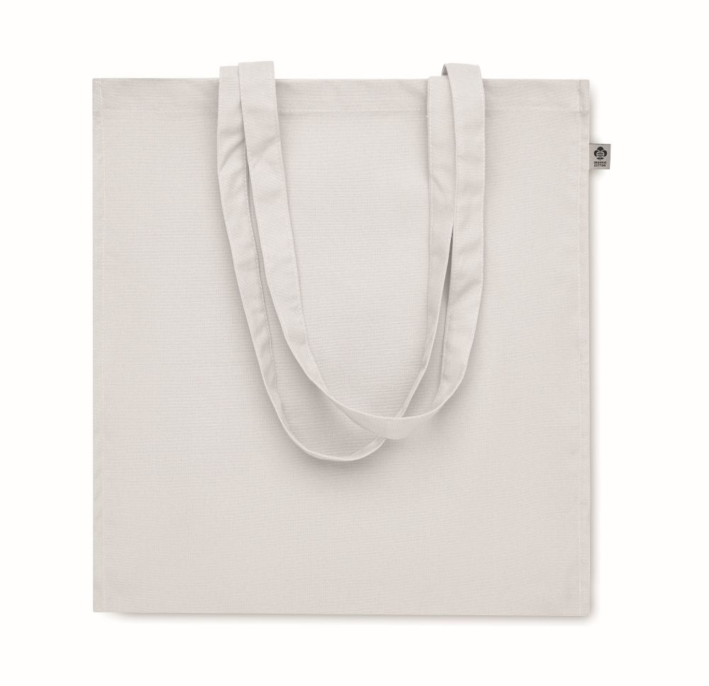 Organic cotton shopping bag with long handles and gusset. 220 gr/m².