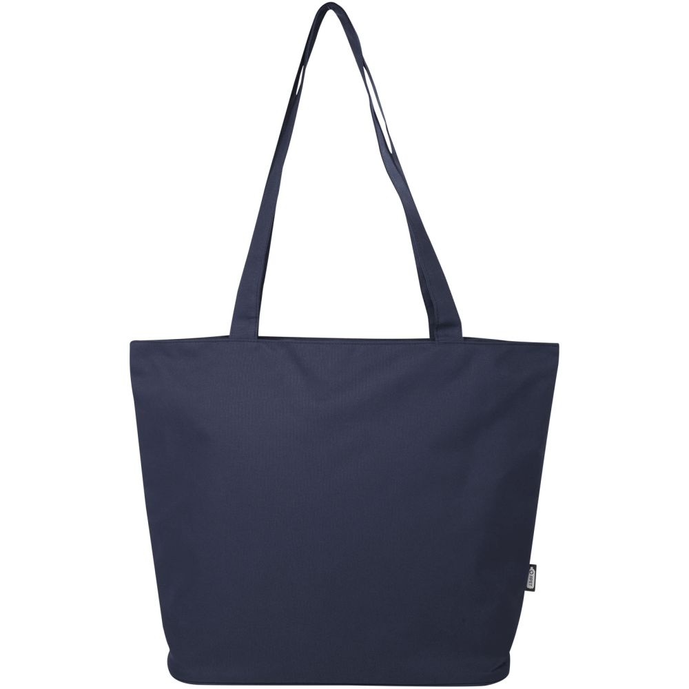 Made from water-repellent 600D RPET, the Panama GRS recycled zippered tote bag is a perfect and sustainable multi-purpose bag for going to an event, to the beach, or to use for grocery shopping. It features a zippered main compartment, and a zipper pocket inside big enough to hold your phone as well as other valuable belongings. The handles are 34 cm long and therefore the tote bag is easy to carry over the shoulder. Resistance up to 10 kg weight. PVC free.
