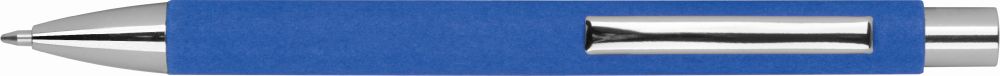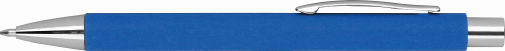 Environmentally friendly blue-writing pen with paper barrel and metal clip. We print your logo on the barrel.