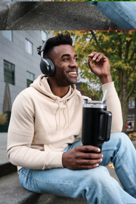 Meet Peakflow, the ultimate 1200 ml tumbler designed for those who need a little extra. Its comfort-grip handle and slim base make it easy to carry and fit into most cup holders, keeping you hydrated on the go. Outside made from durable recycled stainless steel, Peakflow’s double-walled, vacuum-insulated body keeps drinks at the perfect temperature. It features a spill-proof lid with a dual function for sipping or using the included recycled steel straw with a silicone tip. RCS-certified, with 29% recycled content, and BPA-free. Perfectly practical and lower impact, we recommend handwashing.Bulk packed.