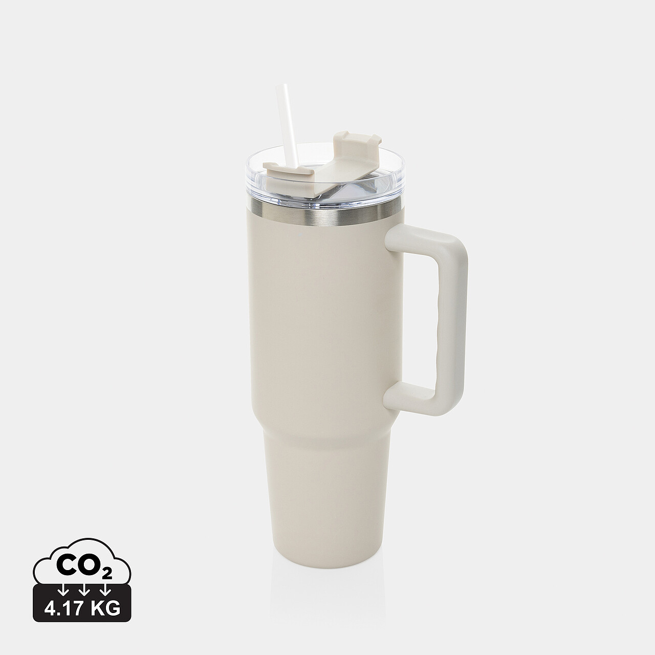 Meet Peakflow, the ultimate 1200 ml tumbler designed for those who need a little extra. Its comfort-grip handle and slim base make it easy to carry and fit into most cup holders, keeping you hydrated on the go. Outside made from durable recycled stainless steel, Peakflow’s double-walled, vacuum-insulated body keeps drinks at the perfect temperature. It features a spill-proof lid with a dual function for sipping or using the included recycled steel straw with a silicone tip. RCS-certified, with 29% recycled content, and BPA-free. Perfectly practical and lower impact, we recommend handwashing.Bulk packed.
