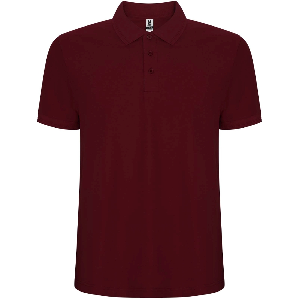 Short-sleeve polo shirt. Collar and sleeves edging in 1x1 ribbed fabric with detail. 3-button placket. Reinforced covered seams in collar. Side slits and optional pocket. Washable at 60 degrees. Removable label. Anti-pilling treatment.
