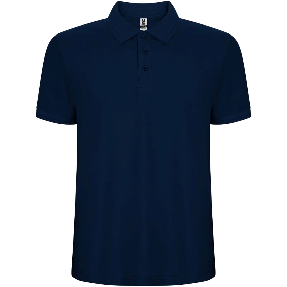 Short-sleeve polo shirt. Collar and sleeves edging in 1x1 ribbed fabric with detail. 3-button placket. Reinforced covered seams in collar. Side slits and optional pocket. Washable at 60 degrees. Removable label. Anti-pilling treatment.