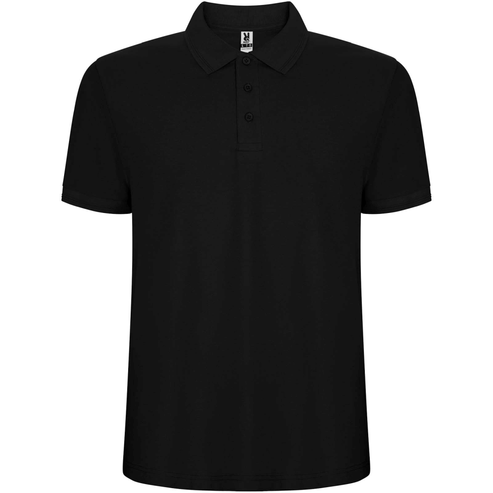 Short-sleeve polo shirt. Collar and sleeves edging in 1x1 ribbed fabric with detail. 3-button placket. Reinforced covered seams in collar. Side slits and optional pocket. Washable at 60 degrees. Removable label. Anti-pilling treatment.