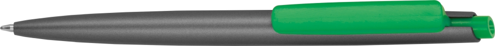 Retractable biros made of recycled plastic with coloured applications and large capacity refill that writes in blue. Your logo is printed to the right of the clip. Dimensions: o 1 x 14,3 cm