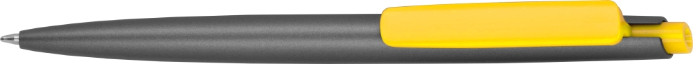 Retractable biros made of recycled plastic with coloured applications and large capacity refill that writes in blue. Your logo is printed to the right of the clip. Dimensions: o 1 x 14,3 cm
