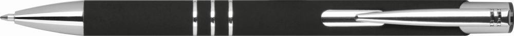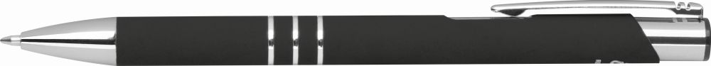 Recycled aluminium pen with rubberised surface and blue gel refill. We engrave your logo next to the clip.
