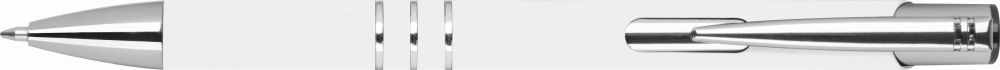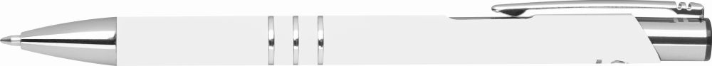 Recycled aluminium pen with rubberised surface and blue gel refill. We engrave your logo next to the clip.
