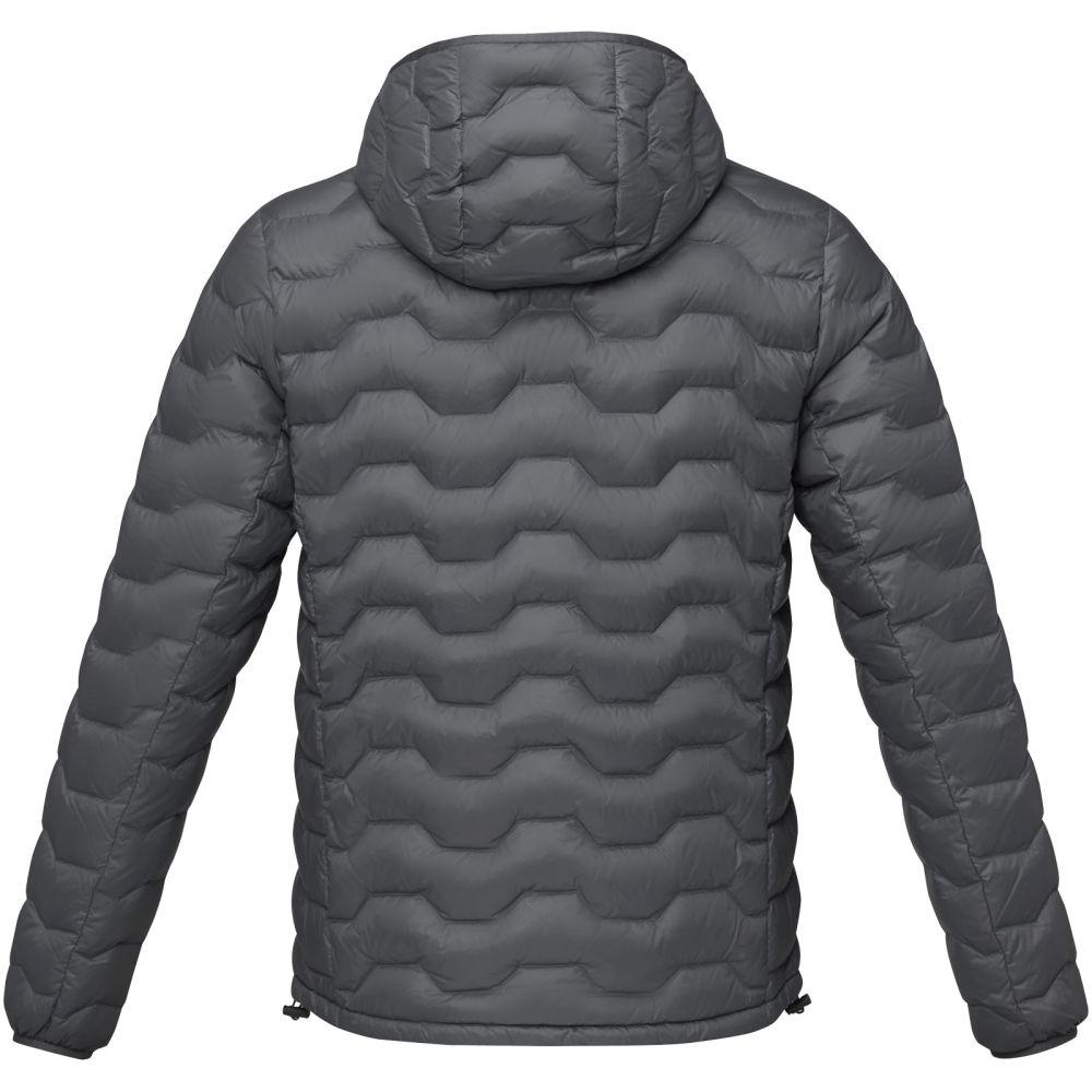 The Petalite mens GRS recycled insulated jacket – a sustainable and stylish outerwear choice for environmentally-conscious adventurers. Crafted with precision and care, this jacket is fully GRS certified, making it a more sustainable addition to your wardrobe. Designed for comfort and warmth, the honeycomb quilted pattern shows a modern design and enhances insulation, while the GRS certified recycled nylon dull cire 380T woven fabric provides durability and weather resistance. Even the trims and accessories, including zippers, are thoughtfully sourced from recycled materials, ensuring every aspect of this jacket contributes to a greener planet. Equipped with practical features, the Petalite jacket has front pockets with zippers and an inside left bottom pocket for secure storage. The inner stormflap with chin guard shields you from the elements, while the elastic drawstring with adjustable cord lock in the bottom hem allows for a customised fit. The elastic binding on the hood ensures added protection against cold winds. The RDS certified recycled feathers provides warmth without compromising on ethical standards. With GRS certification guaranteeing a 100% certified supply chain, this garment truly represents an environmentally conscious choice.