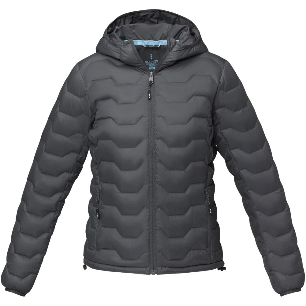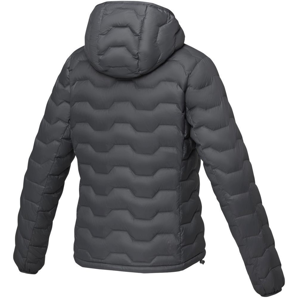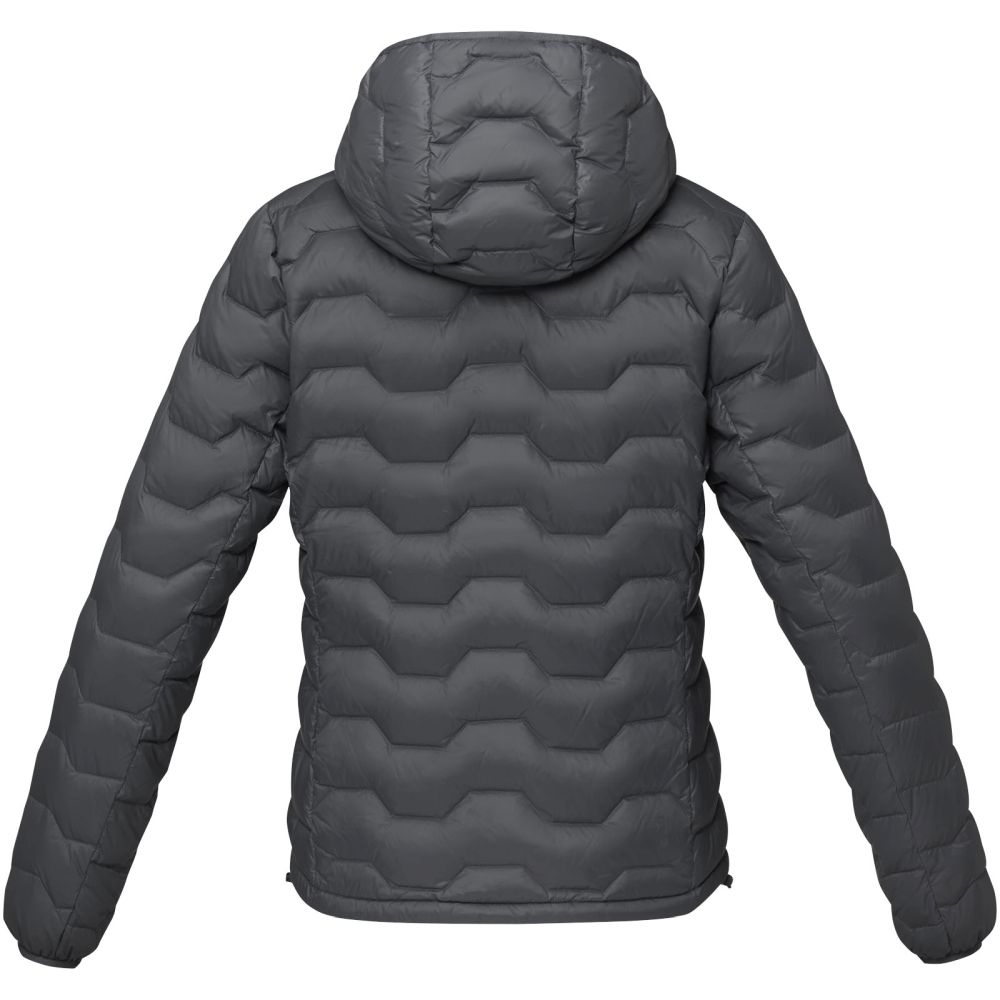 The Petalite womens GRS recycled insulated jacket – a sustainable and stylish outerwear choice for environmentally-conscious adventurers. Crafted with precision and care, this jacket is fully GRS certified, making it a more sustainable addition to your wardrobe. Designed for comfort and warmth, the honeycomb quilted pattern shows a modern design and enhances insulation, while the GRS certified recycled nylon dull cire 380T woven fabric provides durability and weather resistance. Even the trims and accessories, including zippers, are thoughtfully sourced from recycled materials, ensuring every aspect of this jacket contributes to a greener planet. Equipped with practical features, the Petalite jacket has front pockets with zippers and an inside left bottom pocket for secure storage. The inner stormflap with chin guard shields you from the elements, while the elastic drawstring with adjustable cord lock in the bottom hem allows for a customised fit. The elastic binding on the hood ensures added protection against cold winds. The RDS certified recycled feathers provides warmth without compromising on ethical standards. With GRS certification guaranteeing a 100% certified supply chain, this garment truly represents an environmentally conscious choice. This jacket is designed with a fitted shape for a feminine look.