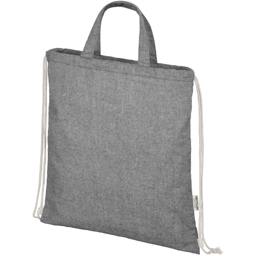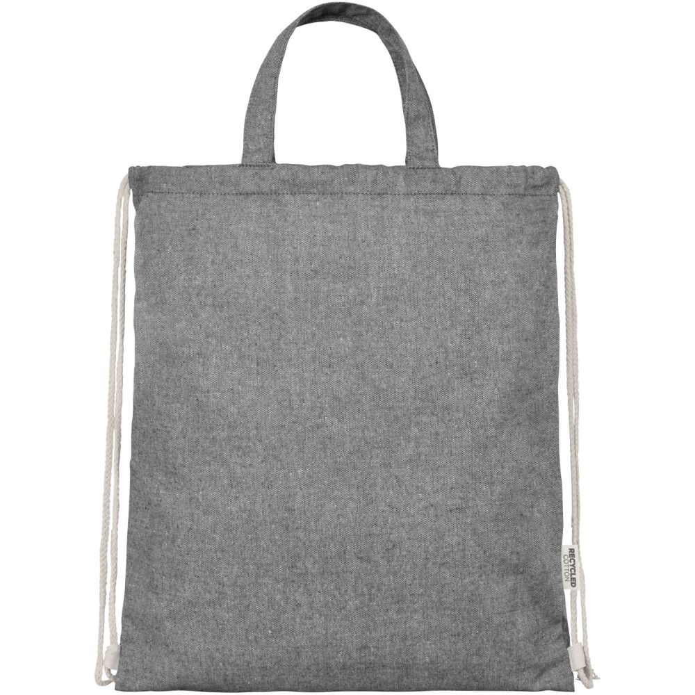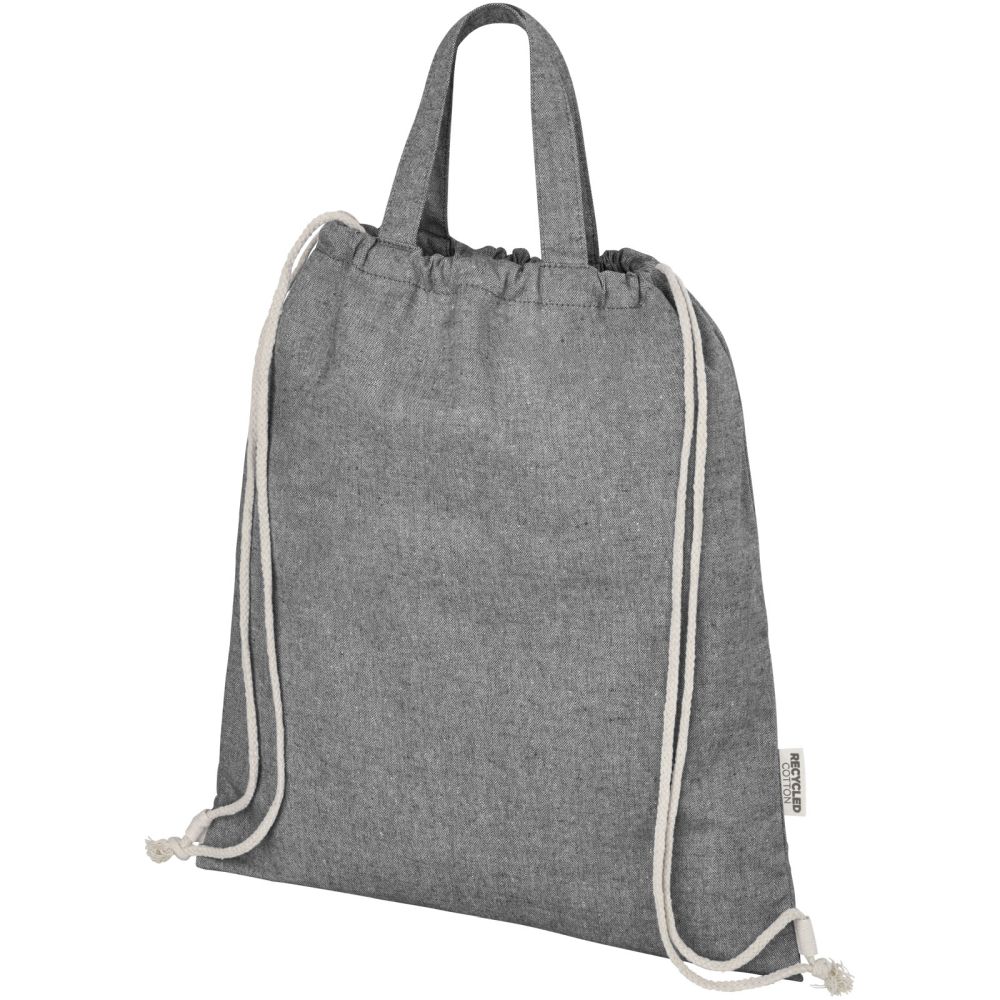 Drawstring backpack made of a 150 g/m2 recycled cotton polyester blend. Large main compartment with cotton drawstring closure in natural colour. Recycled cotton is manufactured from pre-consumer waste generated by textile factories during the cutting process. Similar colours are blended together so no additional dyeing is required. Due to the nature of recycled cotton, there may be a very slight colour variation. This distinctly adds to a more authentic appearance. Each backpack also comes with an Aware™ tracer. This innovative feature allows users to trace the origins and journey of their item through a QR code, enhancing transparency in the supply chain and fostering a stronger connection between the product and its production process. Resistance up to 5 kg weight. Handle length: 14 cm.