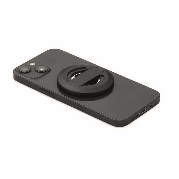 Magnetic phone holder and stand with bottle opener. Compatible with iPhone® 12 and newer. Including additional magnetic metal ring to support charging of other non-magnetic wireless chargeable phones.Dimensions: O5,76 x 0,68cm