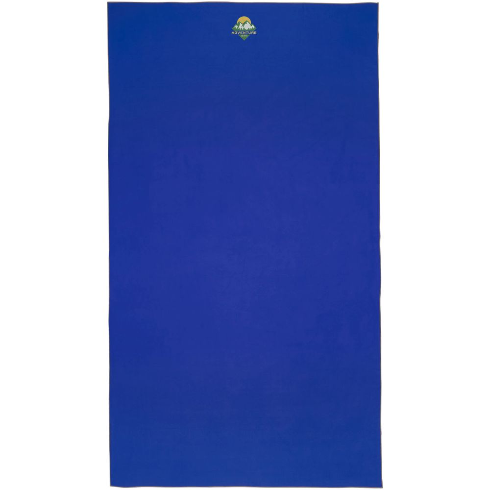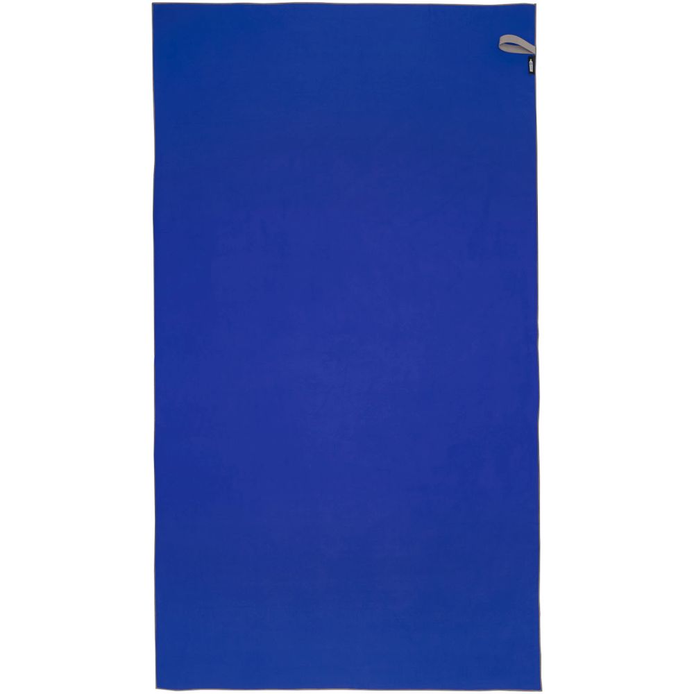 The Pieter sport towel absorbs very well, is lightweight, dries quickly, and the fabric is durable and extremely soft. When the towel is folded and secured with the elastic band its reduced to a small size, making it suitable for bringing to the gym, swimming pool, or for when going backpacking or camping. The towel has a size of 180 x 100 cm and is made from 90% GRS recycled polyester and 10% nylon, and can be washed in the washing machine at 40 °C. Delivered with a storage pouch (25 x 8.5 cm) made from recycled PET plastic, which provides a great area for printing a logo.