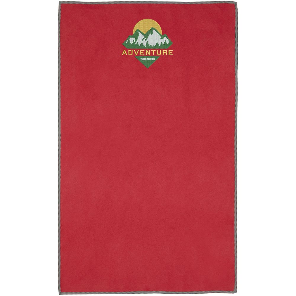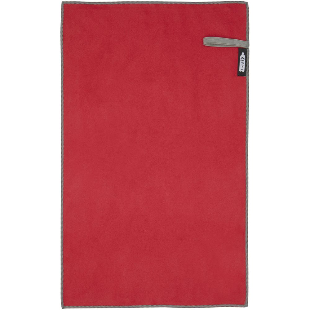 The Pieter sport towel absorbs very well, is lightweight, dries quickly, and the fabric is durable and extremely soft. When the towel is folded and secured with the elastic band its reduced to a small size, making it suitable for bringing to the gym, swimming pool, or for when going backpacking or camping. The towel has a size of 50 x 30 cm and is made from 90% GRS recycled polyester and 10% nylon, and can be washed in the washing machine at 40 °C. Delivered with a storage pouch (15.5 x 10 cm) made from recycled PET plastic, which provides a great area for printing a logo.