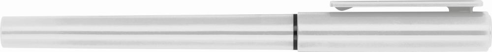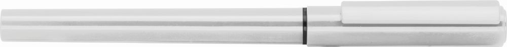 Plastic rollerball pen with lockable cap, plastic clip and large blue ink cartridge. Your logo is printed to the right of the clip.