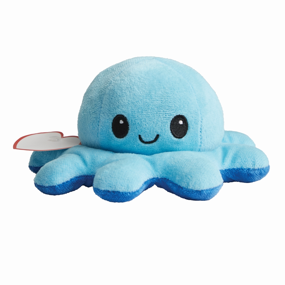 bPlush octopus MATTEO/b: reversible double-sided design, smiling or sad face, with soft fur, with heart to print on. Dimensions: o 19 x 13 cm