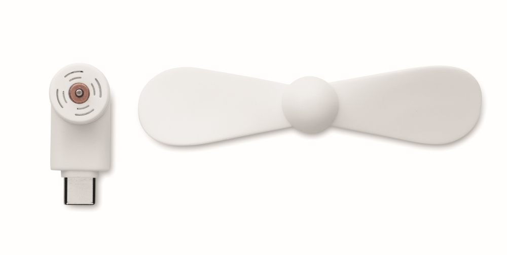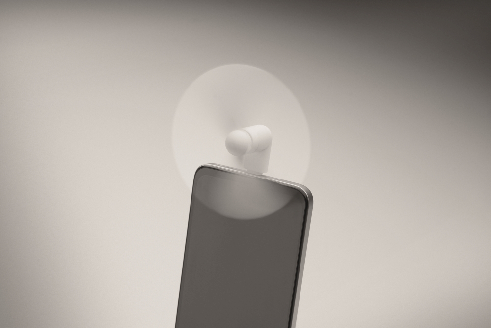 Portable UBS-C smartphone fan in TPE. Dimensions: 8,8 x 3,5 x 3,7 cm
