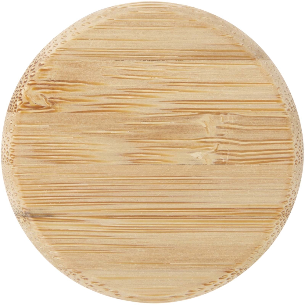 Single-walled glass water bottle with a screw-on bamboo lid sourced from more sustainable and socially responsible sources. It comes with a comfortable silicone strap for easy carrying. Delivered in a recycled cardboard gift box. Volume capacity: 500 ml. Dimensions: 6,4 x 22,8 x 6,4 x O 6,4 cm