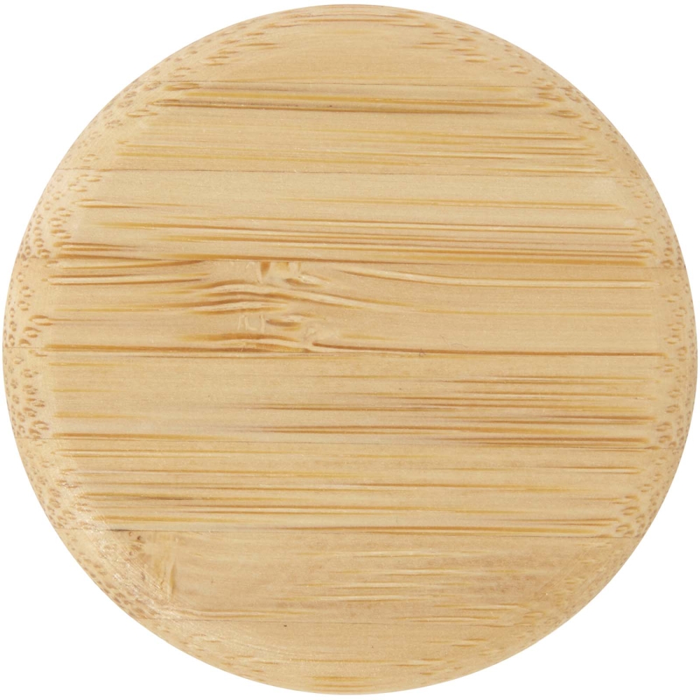 Single-walled glass water bottle with a screw-on bamboo lid sourced from more sustainable and socially responsible sources. It comes with a comfortable silicone strap for easy carrying. Delivered in a recycled cardboard gift box. Volume capacity: 500 ml. Dimensions: 6,4 x 22,8 x 6,4 x O 6,4 cm