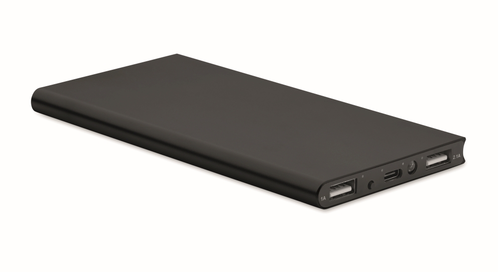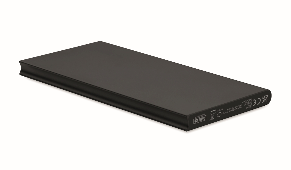 Power bank 8000 mAh in recycled aluminium. Capacity for smartphone use, output current DC5V/2A. Including USB Type-C charging cable. In/Output: USB Type-C. Dimensions: 7,5 x 15,2 x 0,9 cm