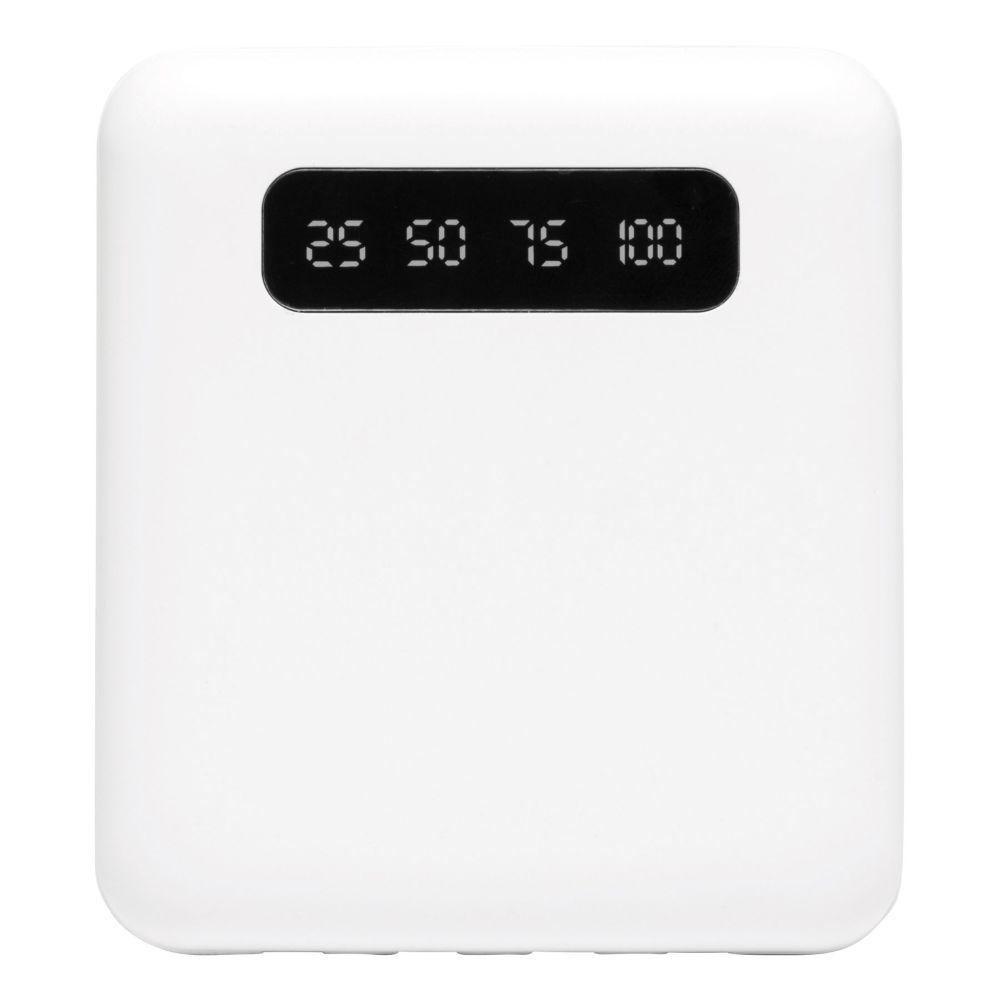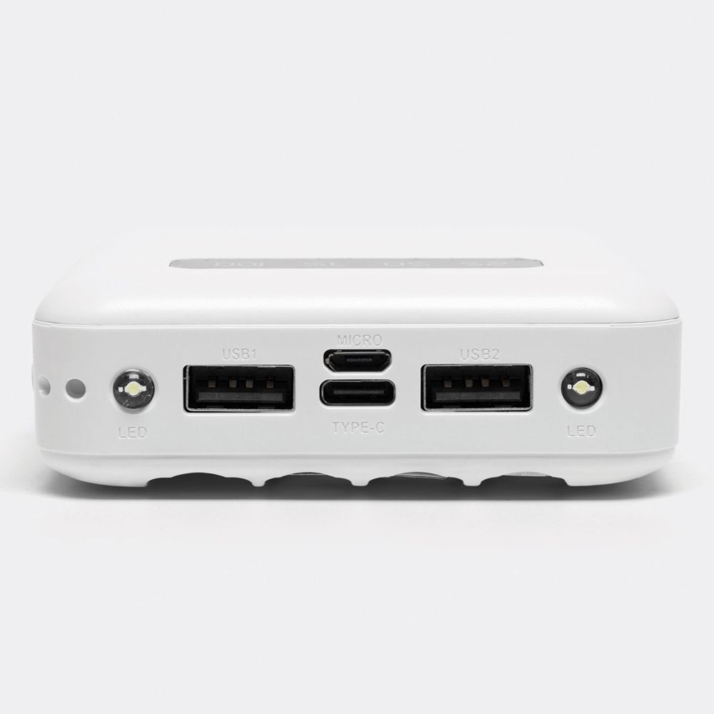 Powerbank PRECIOUS: suitable for smartphones and USB-powered devices, 2 USB-Type-A output ports, Micro-USB and USB Type-C input ports, capacity: 5.000 mAh, 4 integrated charging cables on the back (USB Type-C, Micro-USB, Lightning and USB Type-A), power indicator (25 / 50 / 75 / 100 %), powerful battery, input power: 5V/2A, output power: 5V/2A (max.), torch with 2 white LEDs, with on/off switch