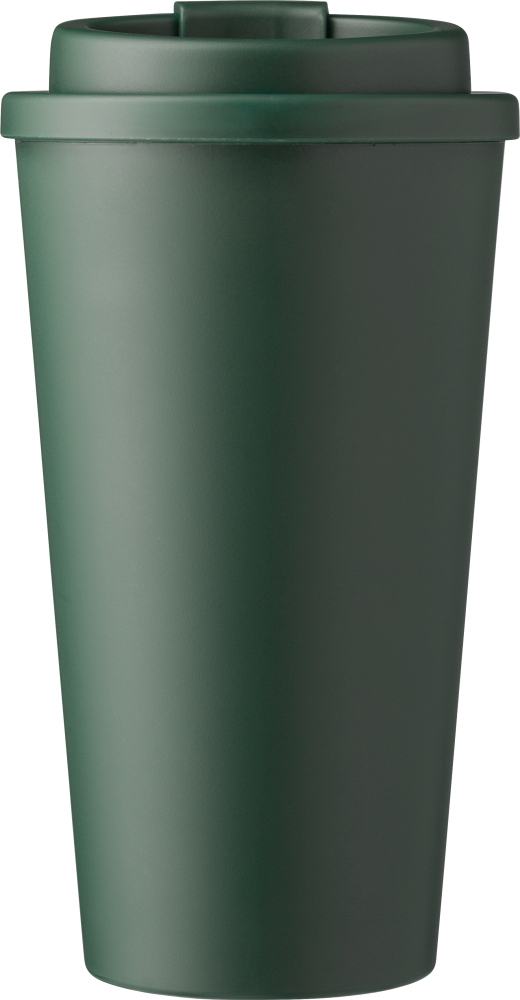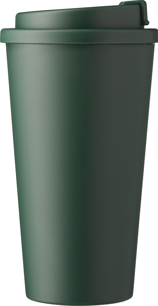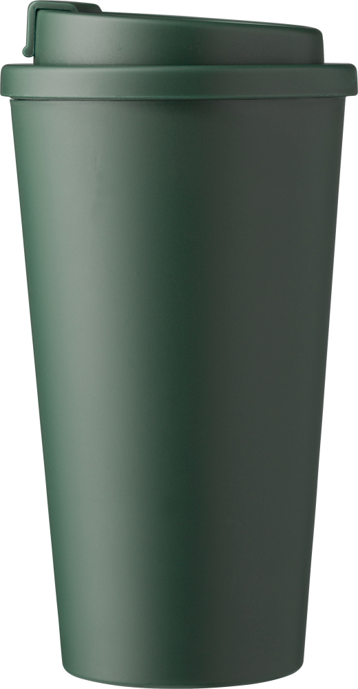 PP to go mug (475 ml) with screw lid. With lockable drinking opening. For both hot and cold liquids. Dimensions: 9,3 x 17,8 cm
